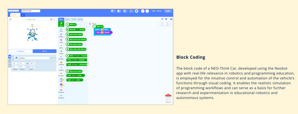 The Neo-Think Car is an innovative kit that lets you build and program your own self-driving car using blocks, teaching you valuable coding and AI skills through hands-on experience. Through the NEOBOT APP, you can customize the car’s programming to adapt to different environments. The car’s self-driving capabilities rely on sensors that detect obstacles and track the path.